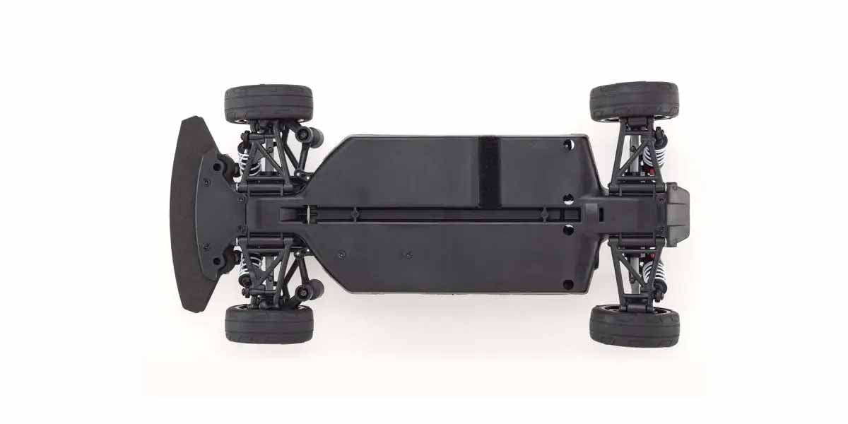 For pure RC car driving fun, the combination of a beautifully detailed body and the FAZER series chassis is unbeatable. Kyosho has completely redesigned its standard touring car chassis, taking performance to a new level. A simplified design with fewer parts has improved maintenance efficiency and reduced weight, while core strength and rigidity have been increased through new materials and reinforcements on the front and rear axles. Furthermore, the symmetrical chassis design ensures excellent front-to-rear balance thanks to the responsive suspension, regardless of the power source. With front and rear differentials, oil-filled shock absorbers, and full ball bearing specifications, the high durability and impact resistance allow drivers to exploit the chassis's full potential. Brake disc wheel hubs with two different offsets (0 mm, +5 mm) offer compatibility with bodies 190 mm and 200 mm wide and allow the wheelbase to be adjusted to 260 mm by replacing certain parts (sold separately) to ensure compatibility with other 1:10 scale bodies in addition to the supplied body. The Readyset package comes fully assembled and includes everything except the charger, chassis battery, and transmitter batteries.